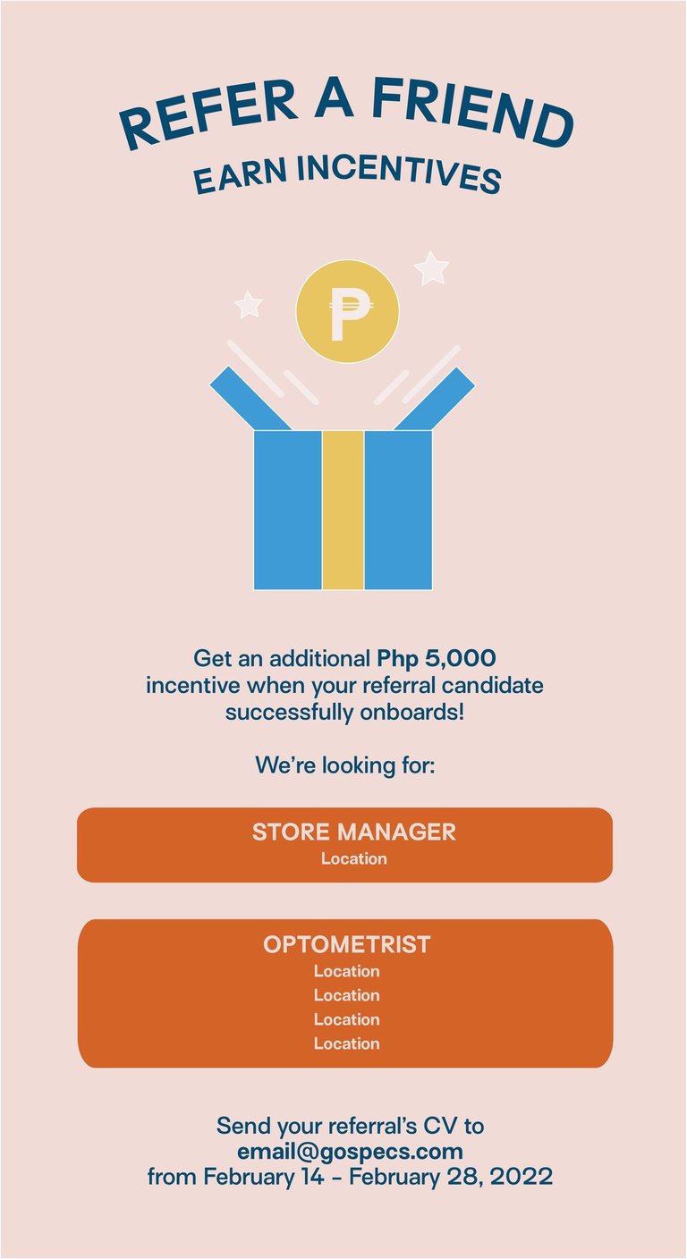 From 2021 to 2021, I worked as a Talent Acquisition Sourcing Specialist for a company that sells eyewear and its makeup and skincare brand. The company prides itself in its minimalist aesthetic, cute vectors for icons, and pastel colors. As part of the talent acquisition team, I created these posters for the company's career page and other job seeker's portals.